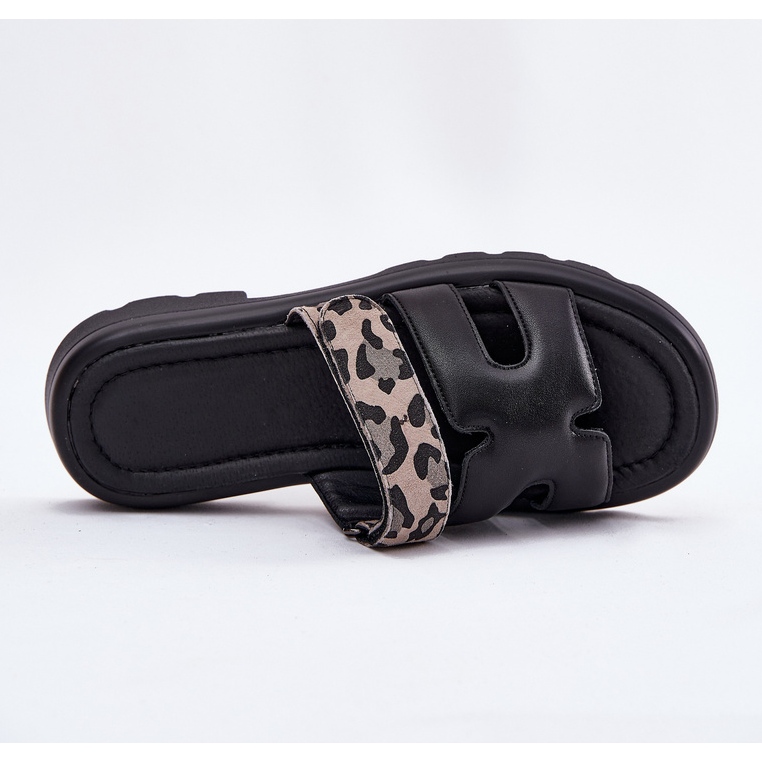 Vinceza Flip Flops din piele pentru femei Vinceza 66769 Leopard negru