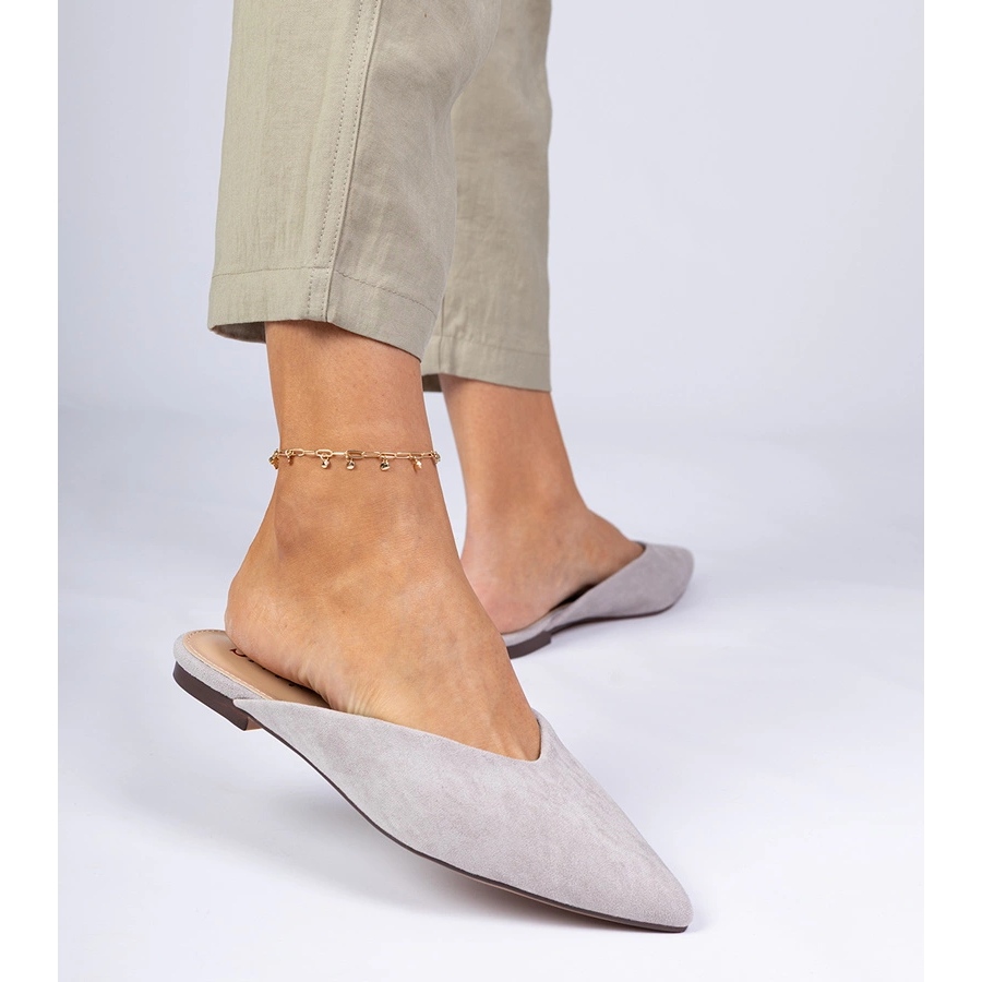 Fabricat din piele de căprioară ecologică de înaltă calitate, Flip -Flops oferă nu numai un aspect atractiv, ci și durabilitatea și confortul purtării. Un călcâi plat cu o înălțime de 1 cm face ca mersul să fie o plăcere, iar tăierea lor elegantă cu nasul într -un spitz adaugă o întreagă clasă și nobilime.