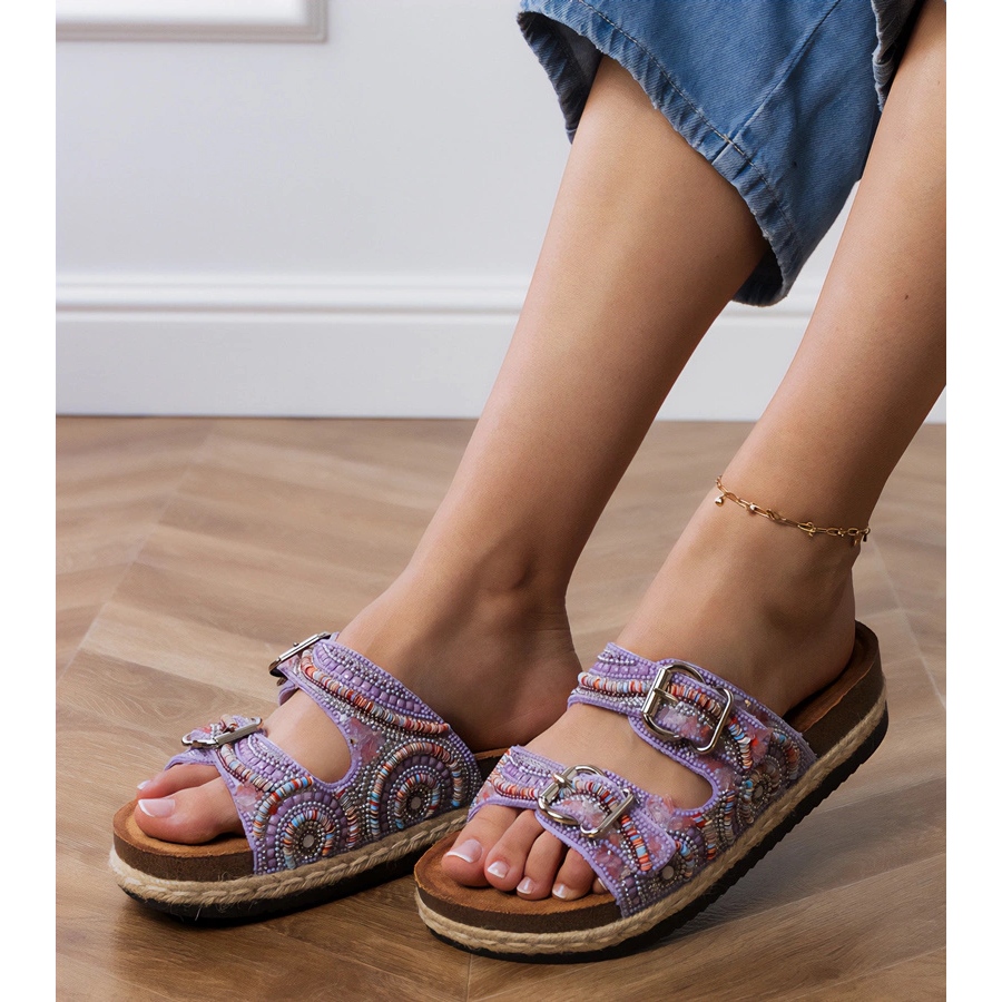 Inna marka Flip -flops etnic purpuriu cu cleme pe dungi violet