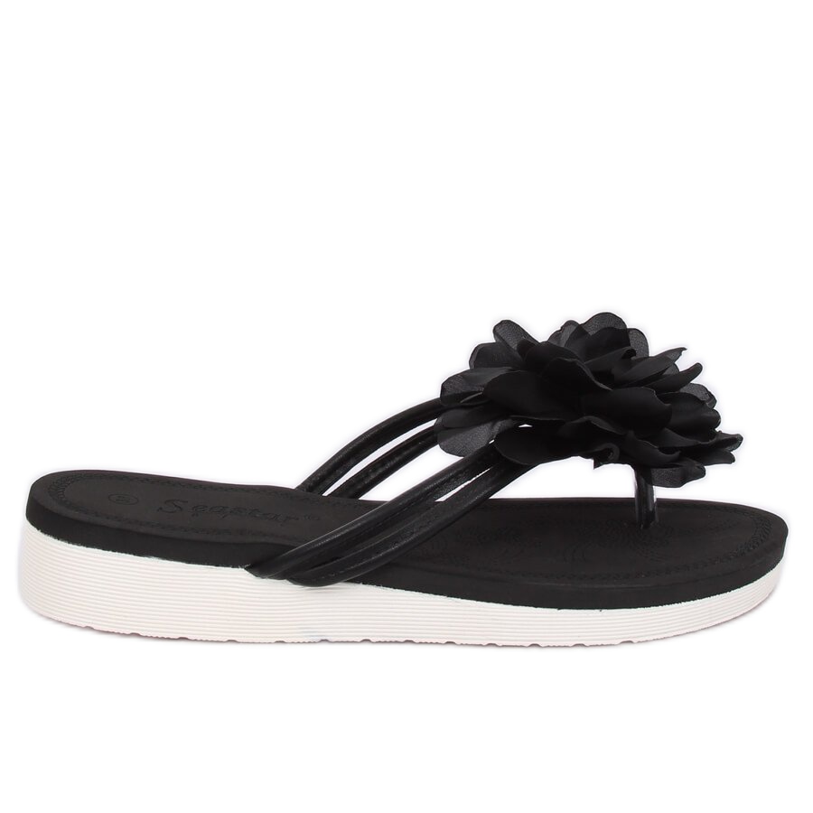 Inna marka Flip-flops negri cu o floare CK103 Black negru