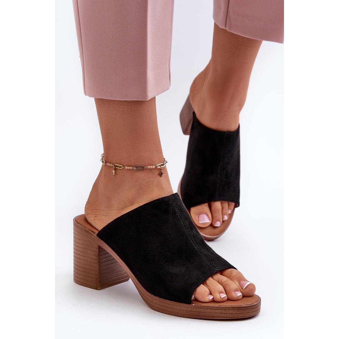 Detalii: Flip-flops negri eleganti cu toc inalt negru