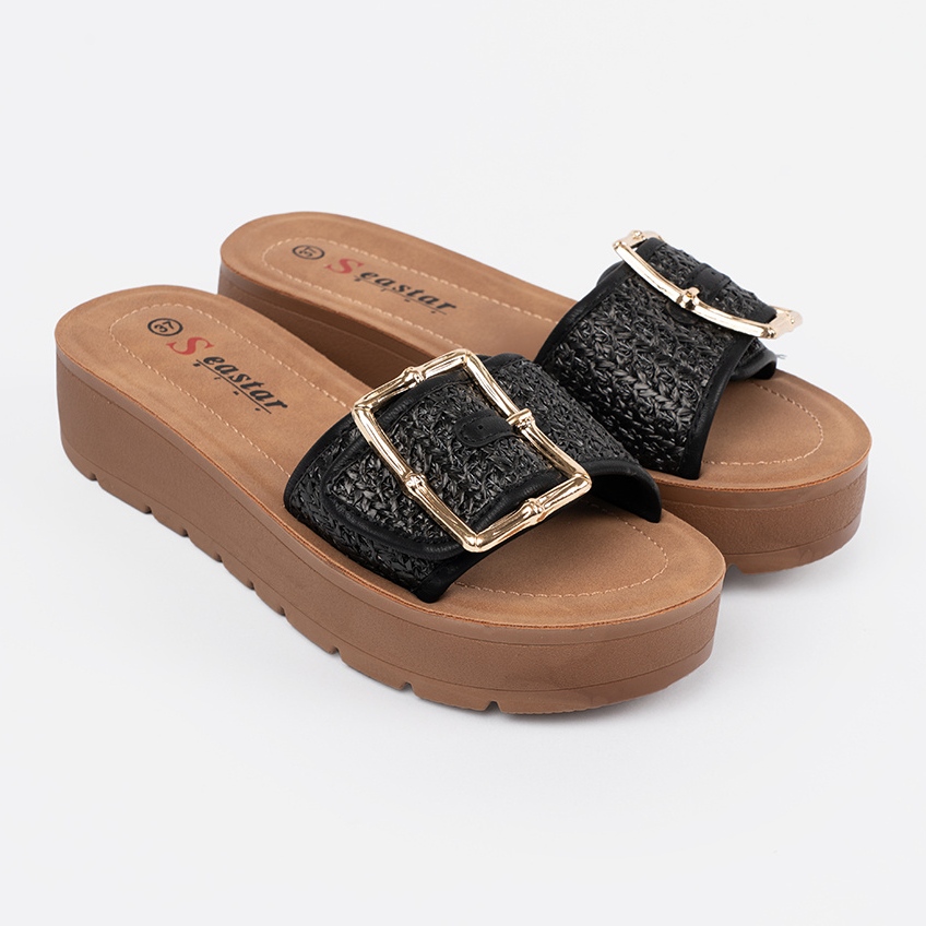 Descoperiți confortul și stilul cu clapele seastice într -o culoare neagră elegantă, decorată cu o cataramă aurii sofisticate. Aceste flip -flop -uri excelente pentru femei combină un personaj casual cu o expresie de modă, potrivită ideal pentru fiecare zi și în stilizări pentru ocazii speciale.