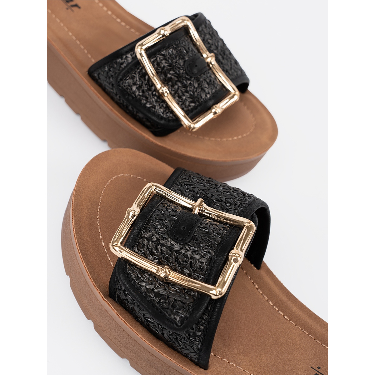 Aceste flip -flop -uri au o fixare deschisă și un fermoar glisant, ceea ce le face foarte ușor de pus și de decolare. Fabricat din materiale de înaltă calitate, țesătura lor exterioară nu este doar elegantă, ci și durabilă. Insertul de piele ecologică asigură confortul toată ziua, iar platforma înaltă de 3,5 cm adaugă o splendoare subtilă figurii dvs., oferind în același timp confort în timp ce mergeți.