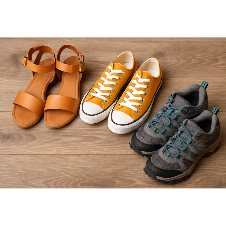 În astfel de situații, alegeți sandale cu prindere mai bună sau confortabil adidași.