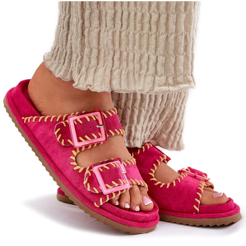 Detalii: Inna Flip -flops pentru femei cu catarame și un tiv decorativ de Fuchsia roz