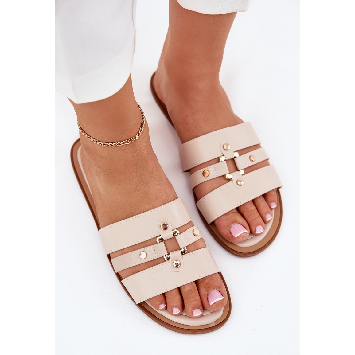 Detalii: Flip -flops pentru femei cu detaliu auriu bej