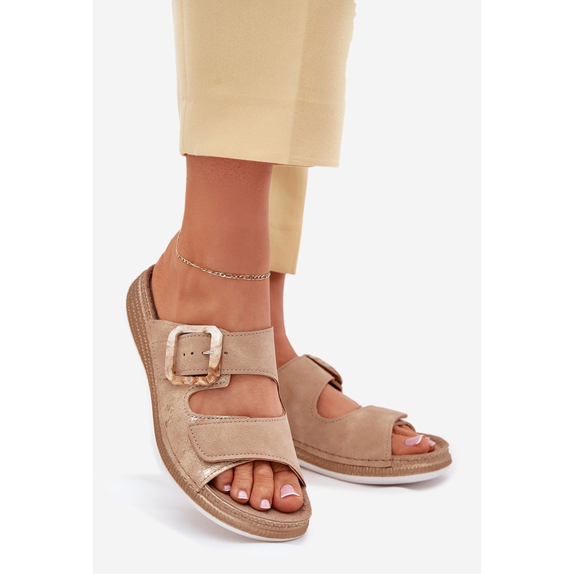 Detalii: Flip -flops pentru femei cu o cataramă și velcro inblu mk000013 bej
