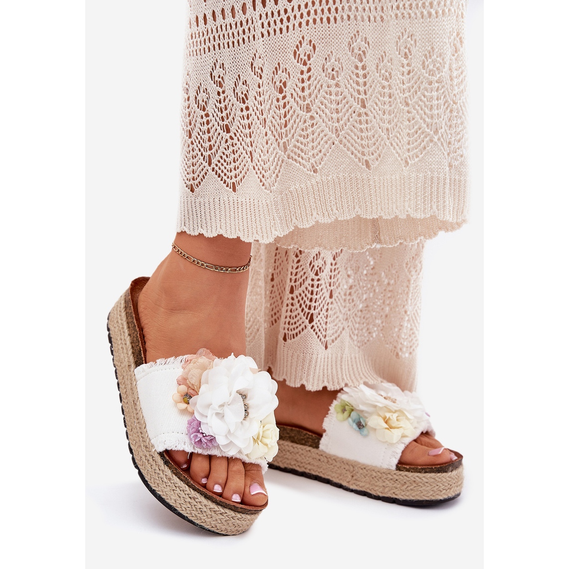 Detalii: Flip -flops pentru femei cu platformă de flori cu împletitură albă