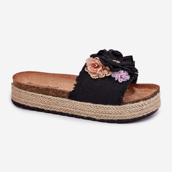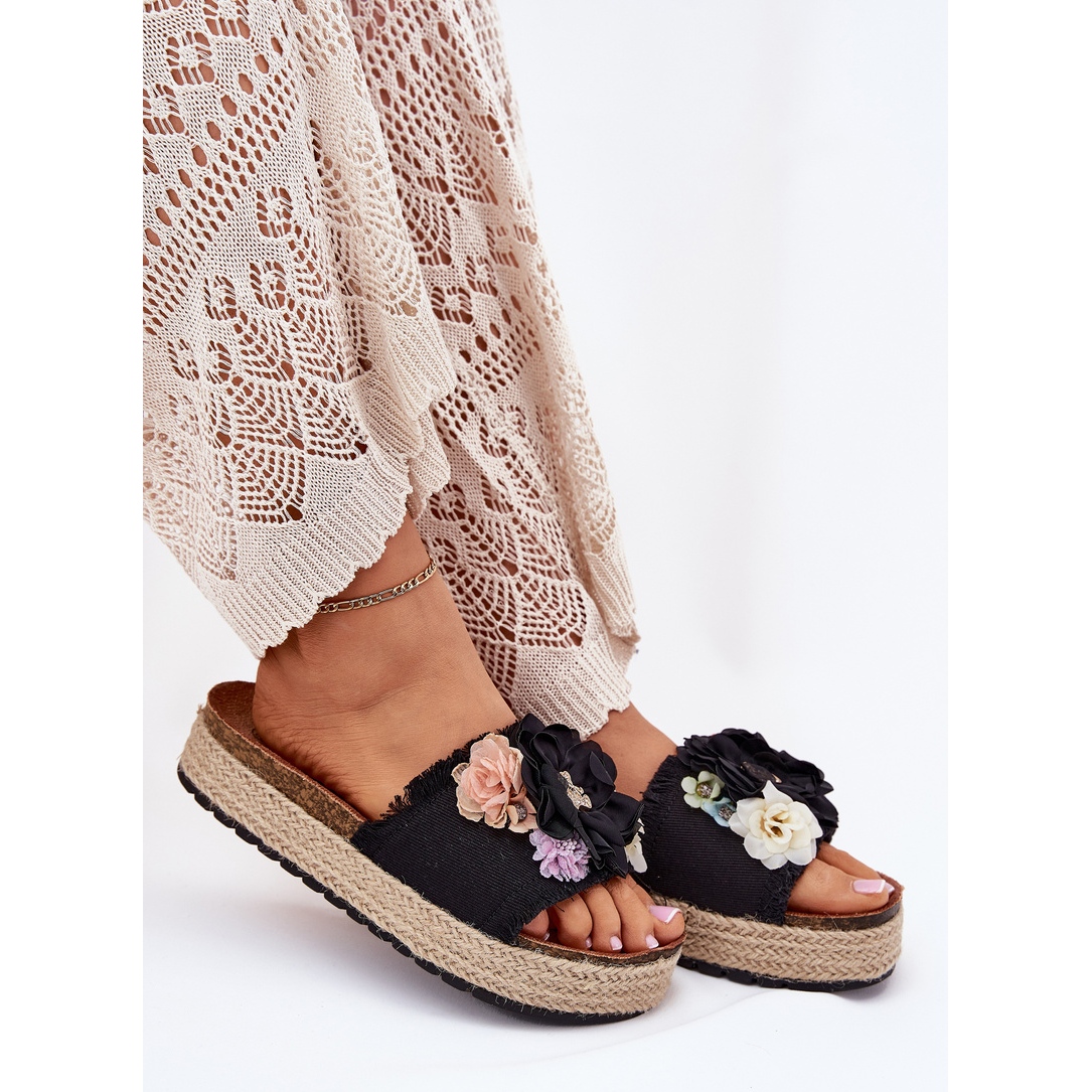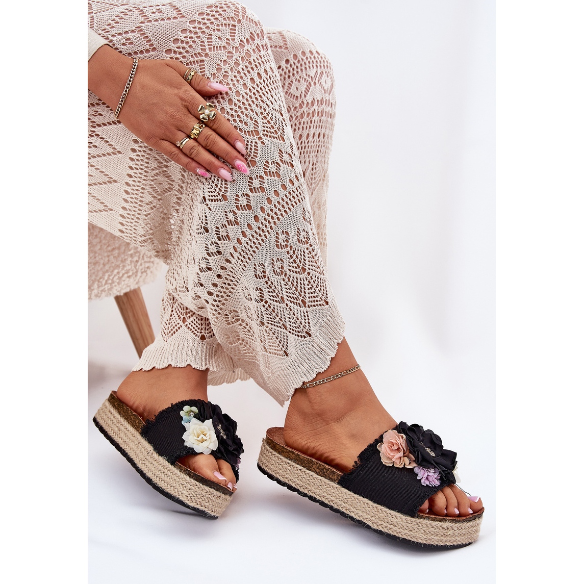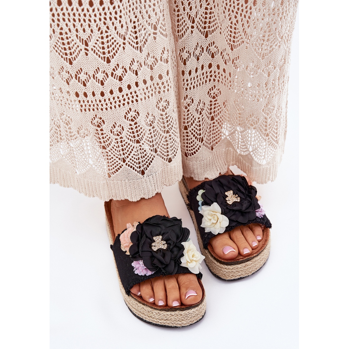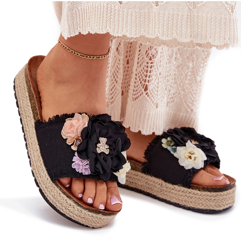 Detalii: Flip -flops pentru femei cu platformă de flori cu împletitură neagră negru