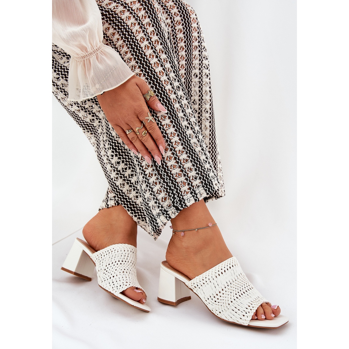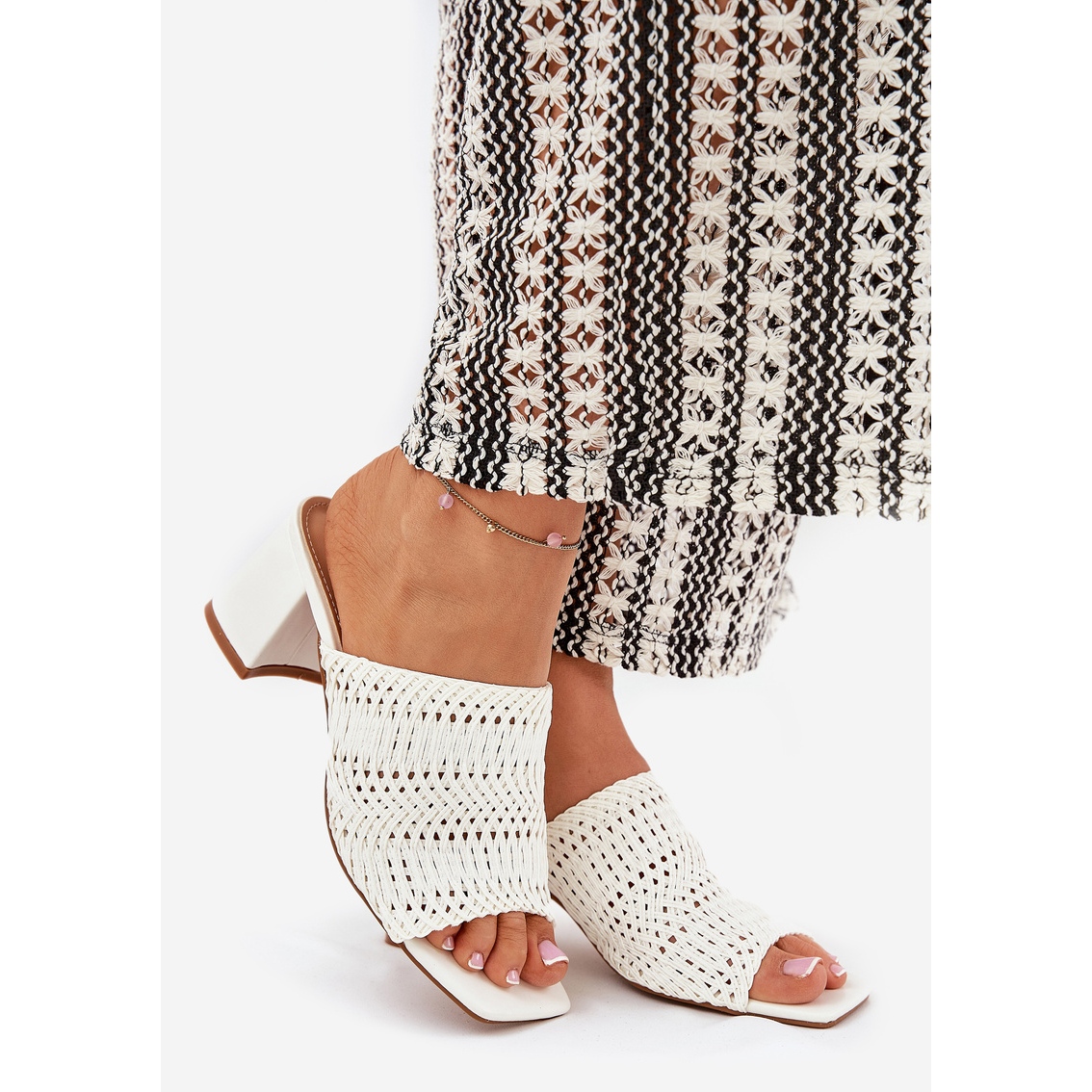 O încorporare de 6,5 cm înaltă nu numai că asigură stabilitatea, ci și un aspect elegant. Insertul de piele Eco garantează confortul purtării toată ziua, iar modelul deschis al împletiturii adaugă un farmec subtil care atrage aspectul.