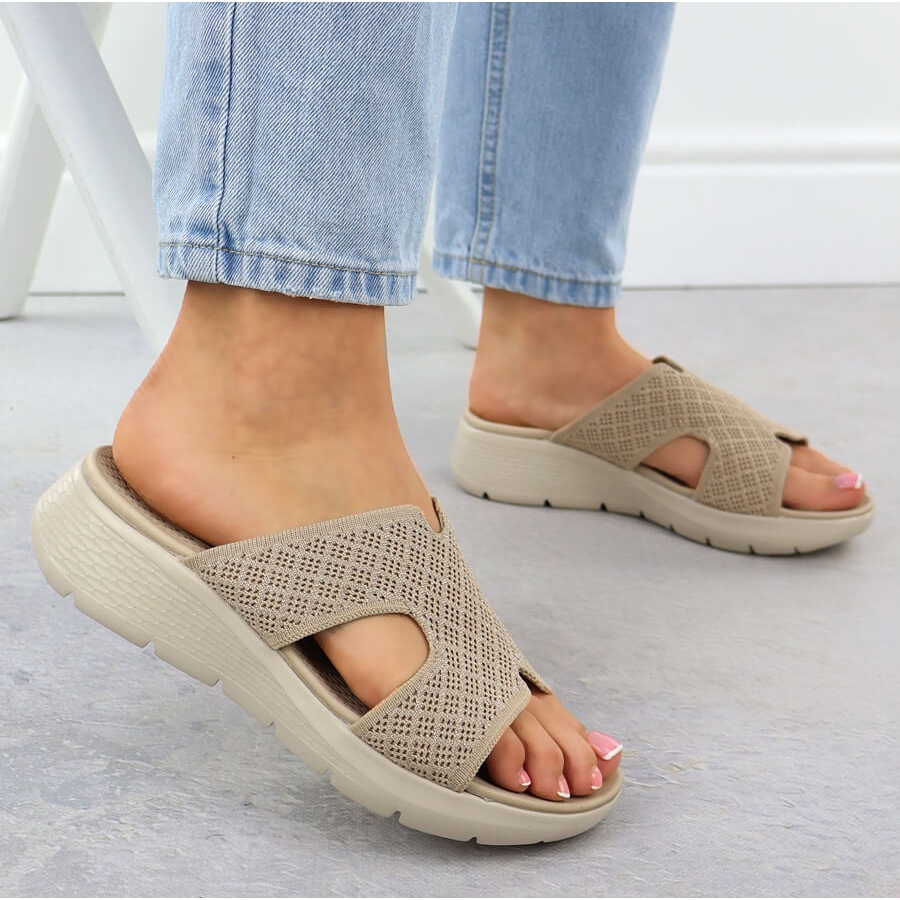 Înălțimea platformei de 2,5 cm și un călcâie de 4 cm adaugă nu numai stilul, dar și prelungește optic picioarele, ceea ce este apreciat în special de doamne. Flip -flop -urile sunt introduse, ceea ce face mai ușor să se pună și să decoleze, iar dimensiunea lor standard face suficient să comanzi dimensiunea obișnuită.