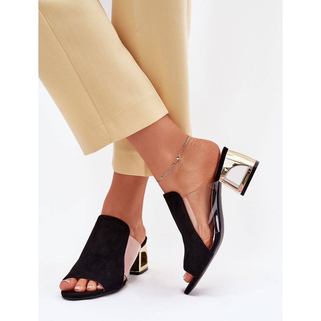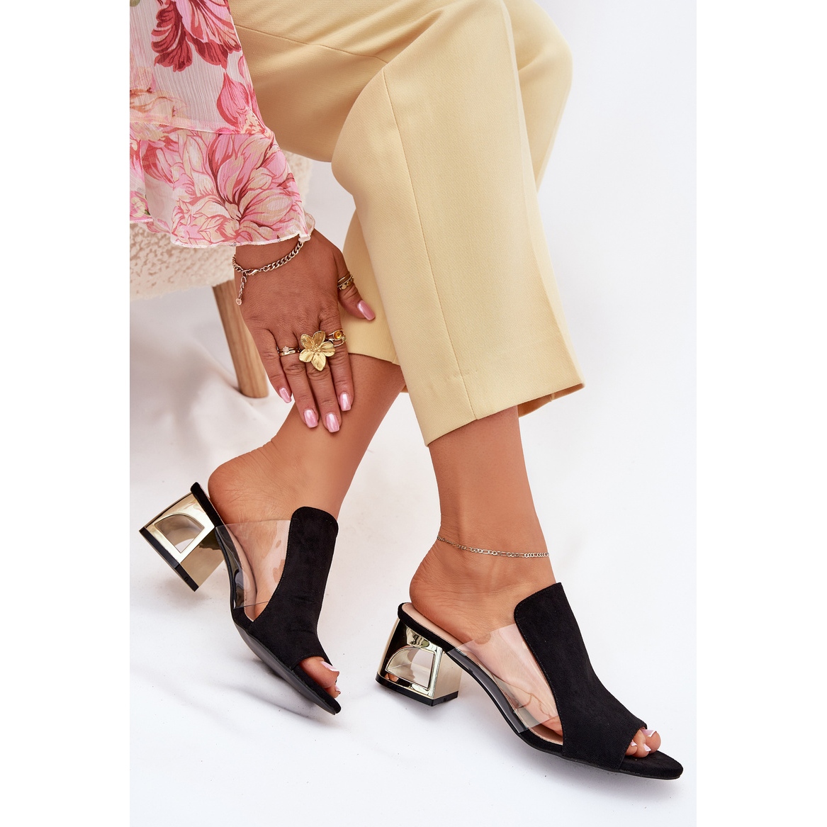 Descoperiți eleganța și confortul de a purta datorită clapetelor femeilor pe un stâlp de aur în negru. Fabricate din piele de căprioară Eco de înaltă calitate, aceste flip -flops sunt un complement ideal pentru fiecare stilizare de vară. Calcul de aur cu o înălțime de 6 cm le oferă un farmec special, asigurând în același timp stabilitatea și comoditatea în timpul utilizării.