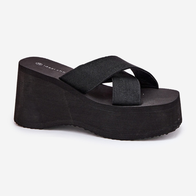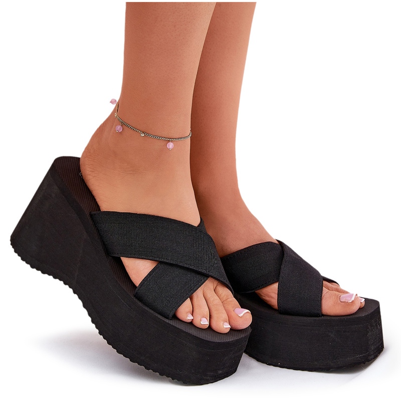 Detalii: Flip -flops pentru femei pe pană și platformă neagră negru