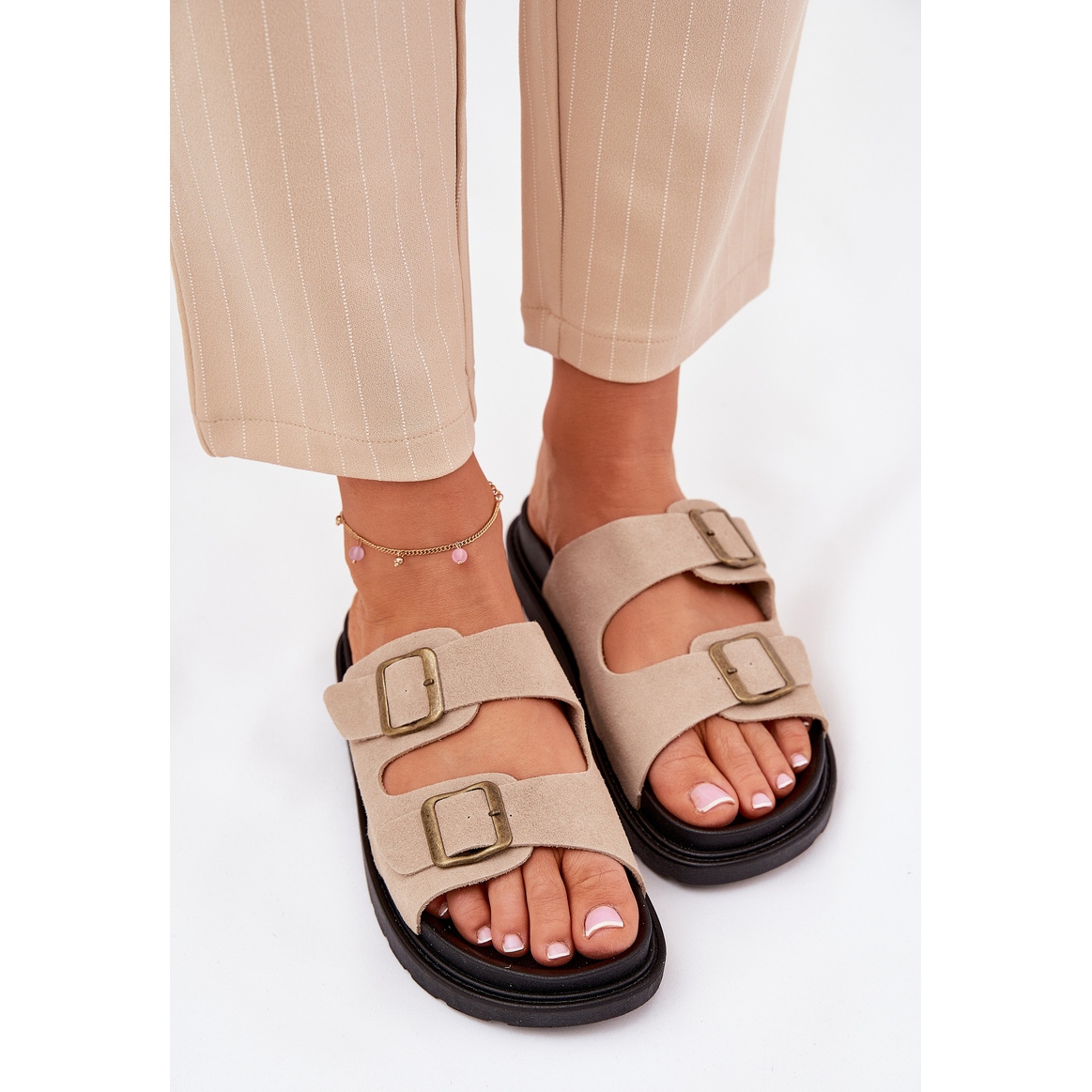 Detalii: Flip -flops pentru femei pe platformă cu catarame bej