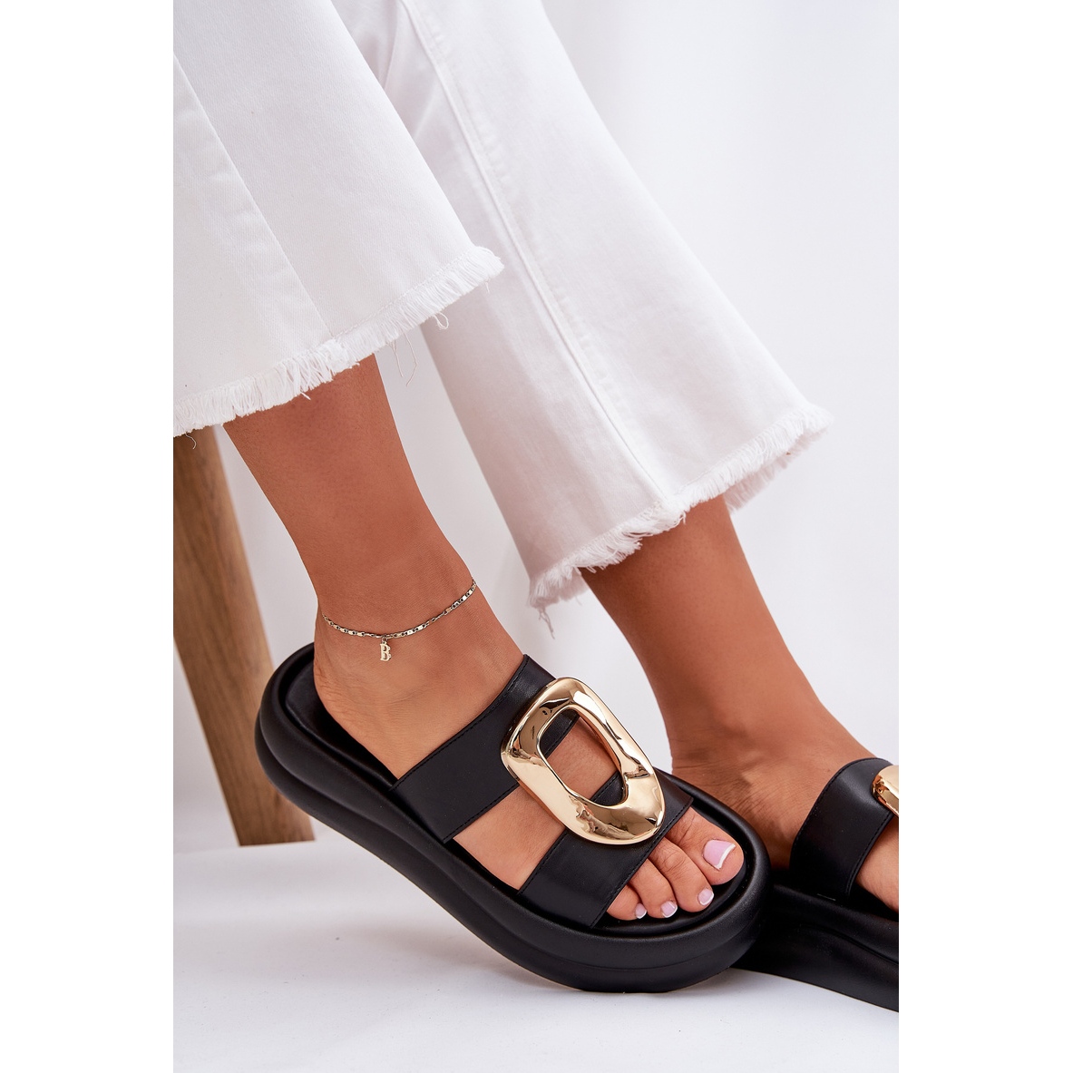 Detalii: Flip -flops pentru femei pe platformă cu detalii aurii negre negru