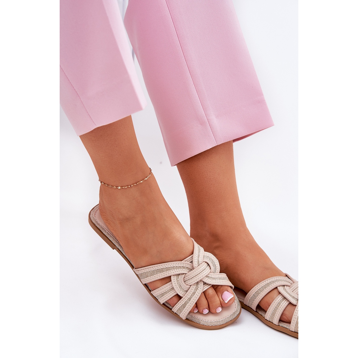 Vă prezentăm flip -uri plate pentru femei cu dungi împletite într -o frumoasă culoare bej - o alegere excelentă pentru zilele de vară! Aceste flip -flop -uri clasice, confecționate din piele ecologică și materiale textile de înaltă calitate, combină confortul și eleganța, oferind în același timp un stil unic. Dungile împletite le oferă un personaj modern, datorită cărora se îmbină bine atât cu rochii ușoare, cât și cu seturi de zi cu zi cu pantaloni sau pantaloni scurți.
