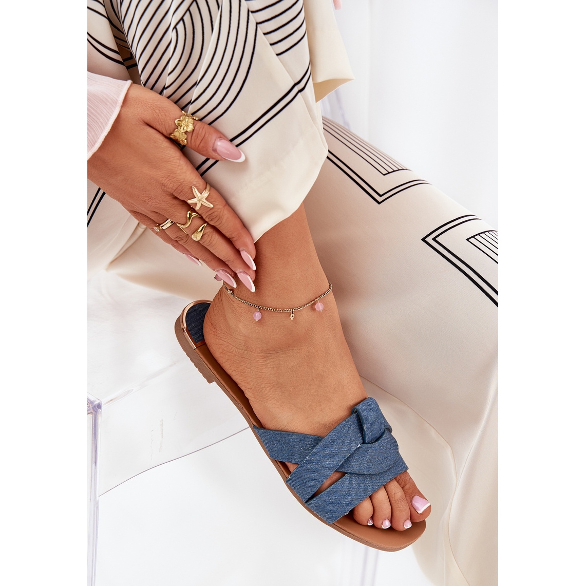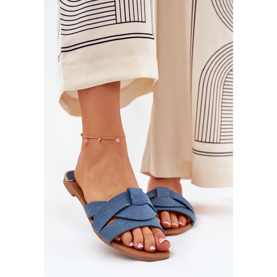 Detalii: Flip -flops pentru femei plate cu dungi din denim împletite albastru