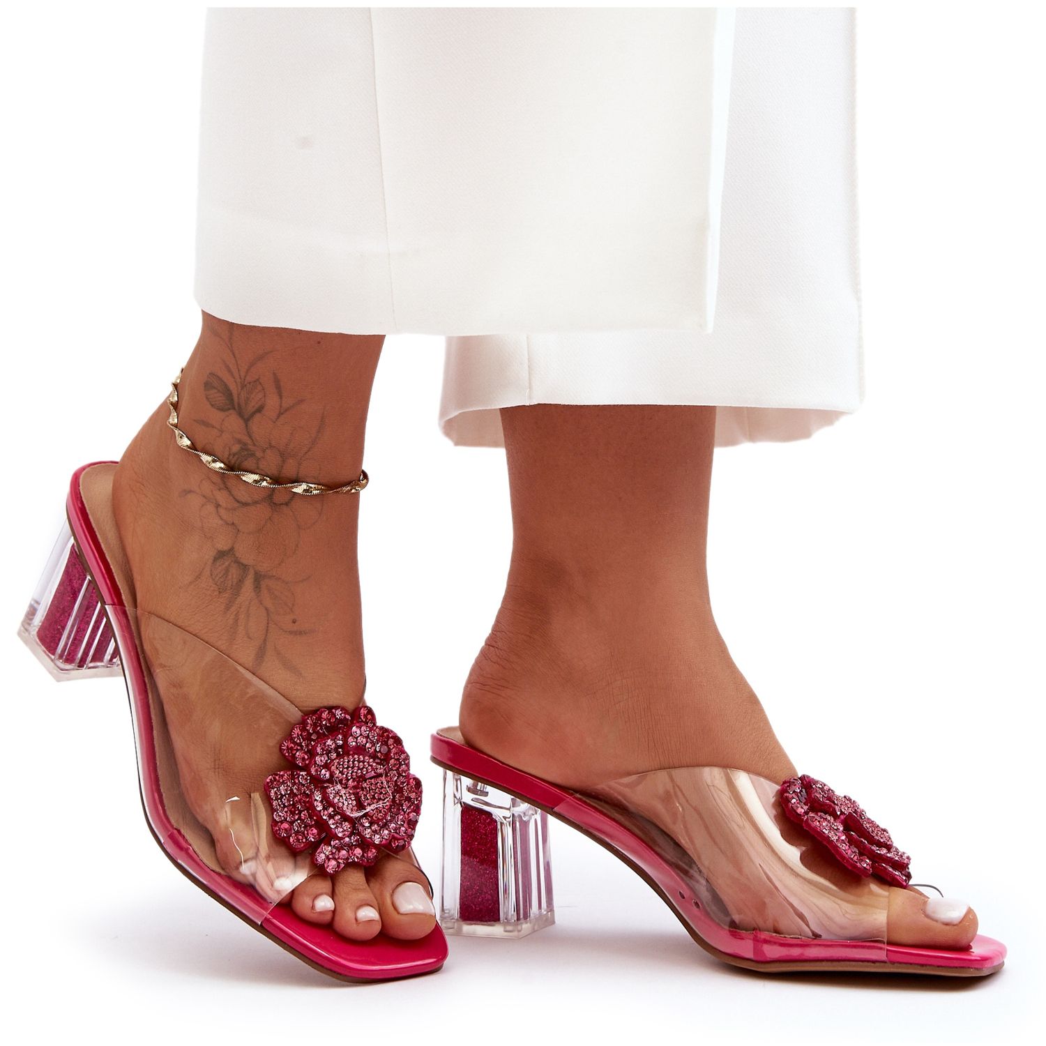 S.Barski Flip-flops transparenti pe toc inalt cu decor fucsia S.Barski MR1037-20 roz