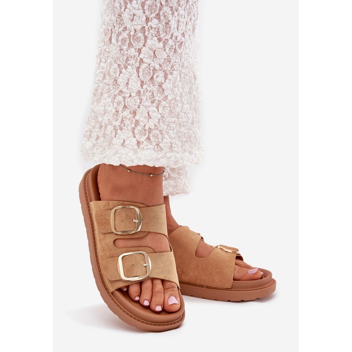 Detalii: Boto Flip -flops -uri pentru femei pe platformă cu catarame de aur Veren Camel maro
