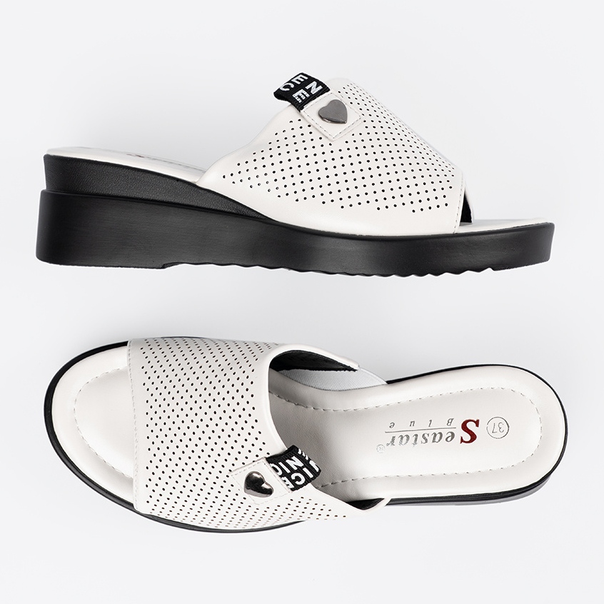 Vă prezentăm clapete albe Openwork pe platformă de la bine cunoscutul brand Seaster, care combină stilul și confortul, perfect zilnic. Aceste fluxuri unice sunt o alegere excelentă pentru fiecare femeie care caută pantofi la modă, care vor oferi, de asemenea, confort pe parcursul zilei.