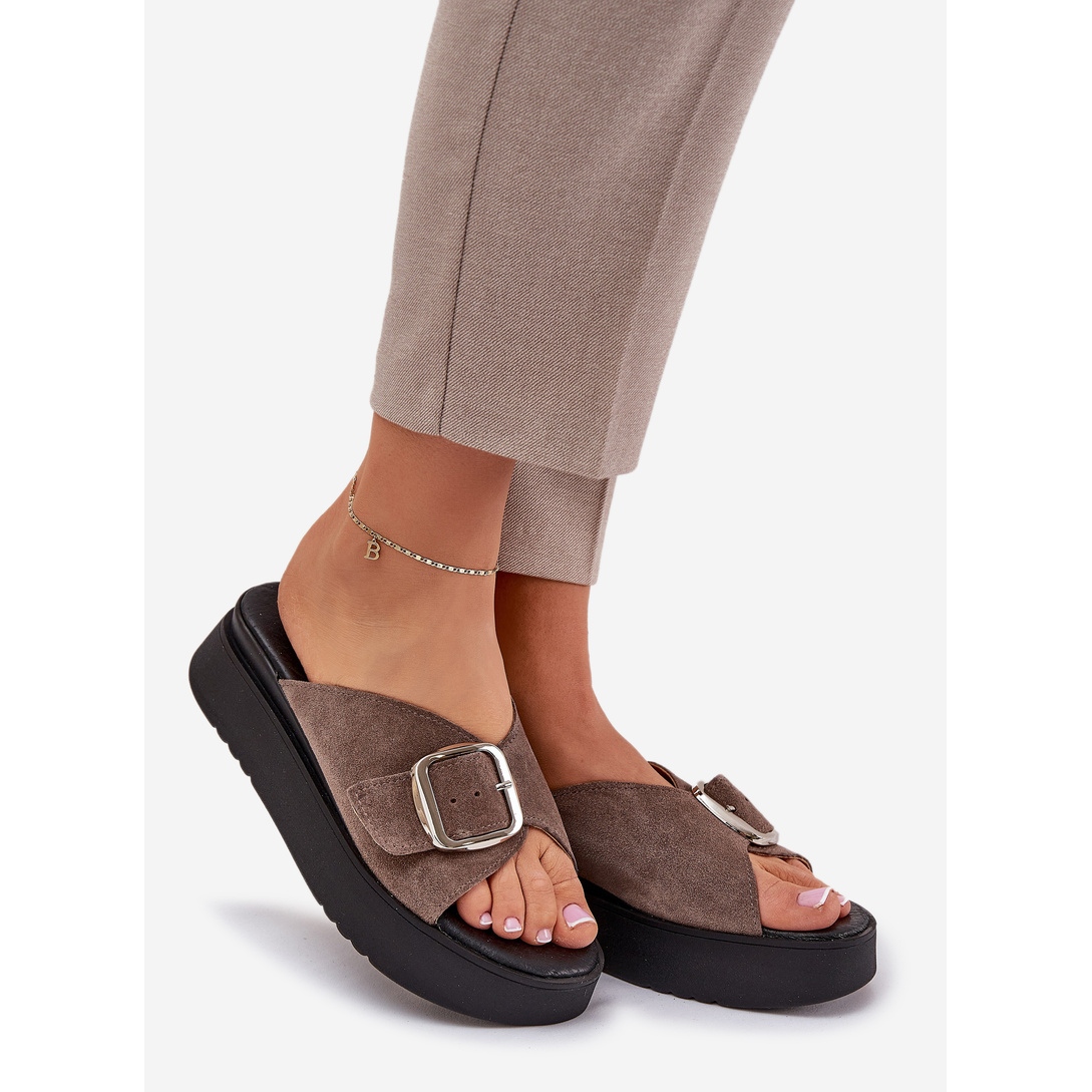 Zazoo Flip -uri din piele de căprioară pentru femei cu o cataramă pe platforma Brown Zazoo 3019 maro