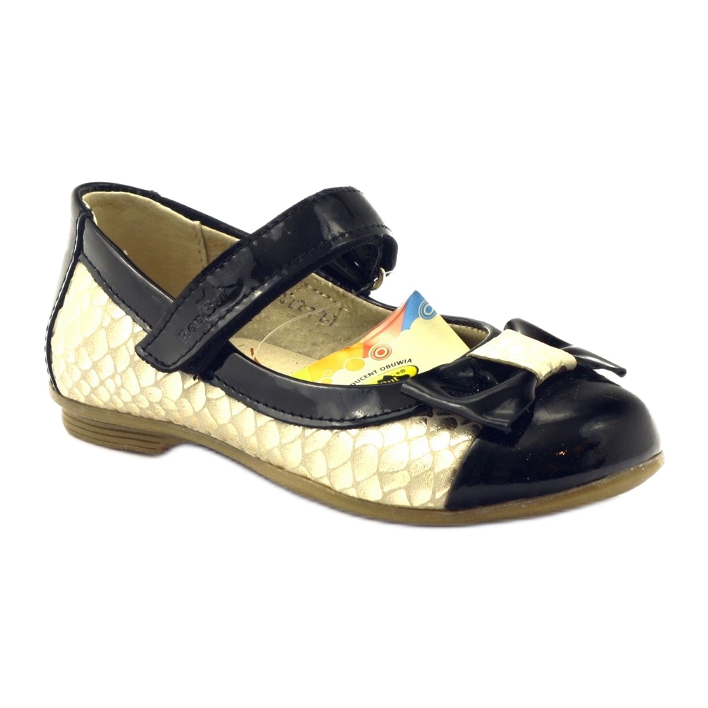 Negru și auriu Ren Dar balerinii sunt o alegere perfectă pentru doamnele mici. Modelul 3227, din piele naturală de înaltă calitate, combină eleganța și confortul. Acești pantofi drăguți au o închidere cu velcro, ceea ce îi face ușor de pus și scos, iar suportul rigid al călcâiului oferă suport adecvat piciorului copilului tău.