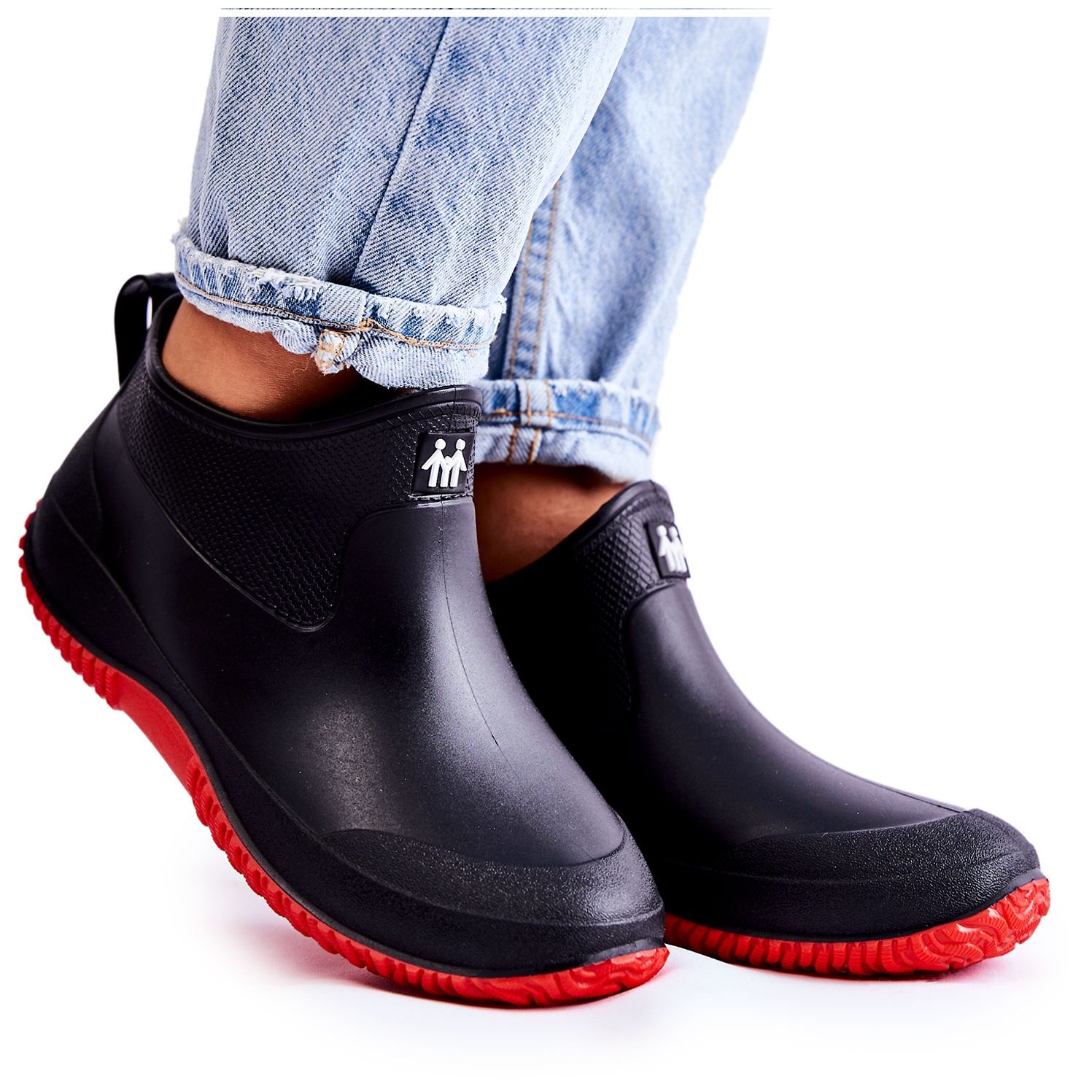 Detalii: Galoshes Eldora, negru și roșu, joasă pentru femei