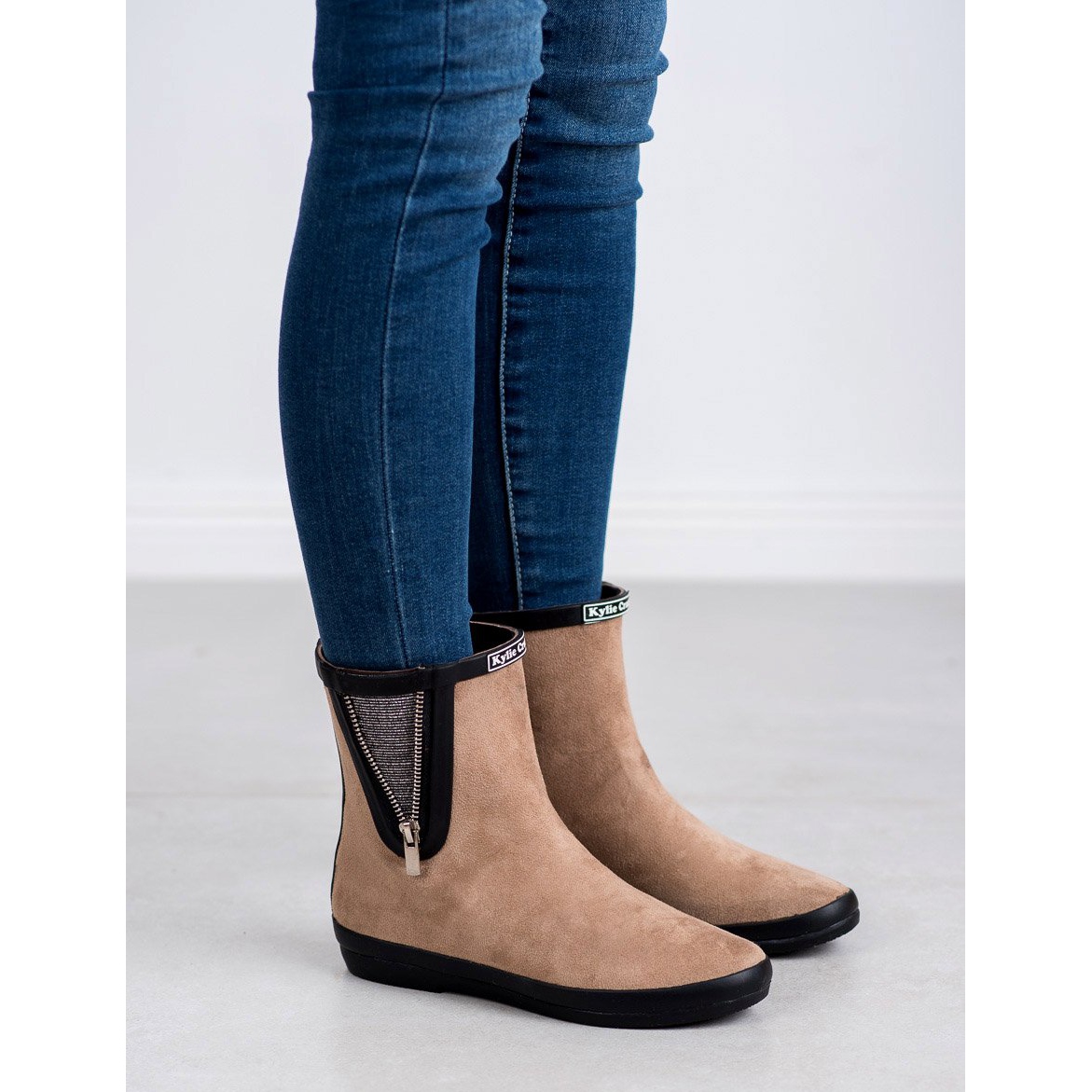 Kylie Kylie Galosuri din piele intoarsa cu fermoar decorativ bej
