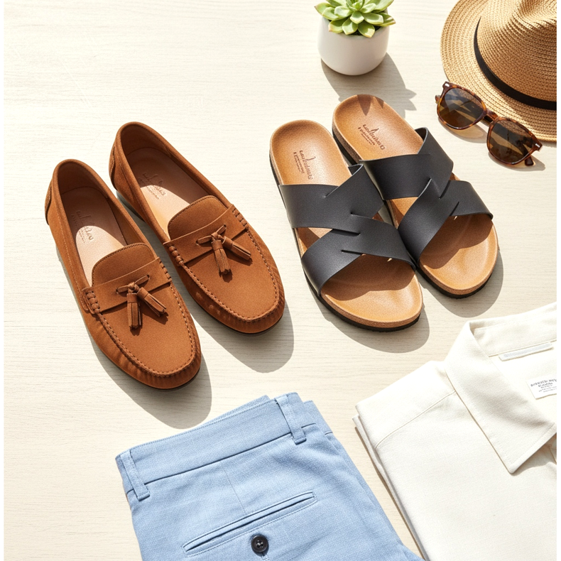 A patra pereche sunt pantofii pentru zilele calduroase, care sunt mai eleganti decat adidasii, dar mai putin formali decat pantofii. Mocasinii sau mocasinii din piele sunt alegerea perfecta pentru primavara si vara. Le poti purta fara sosete, cu pantaloni chino suflati sau blugi usori, creand un look casual dar stilat.