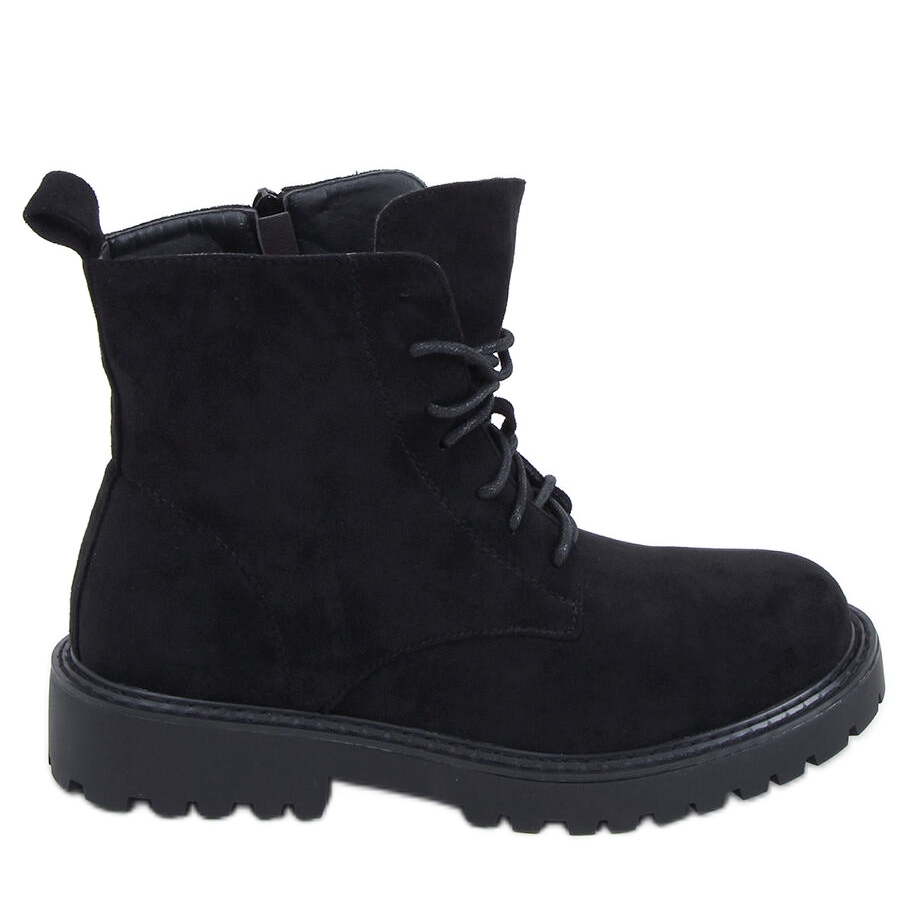 Detalii: PA1 Gaten Cizme negre din piele intoarsa cu siret negru