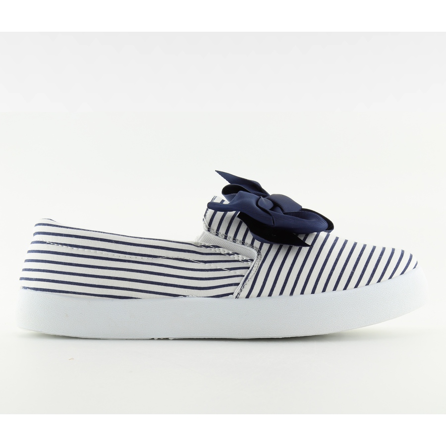 Adidași pentru femei în tăiere în stil marinar. Farmecul este imbunatatit de un arc frumos si o talpa alba intr-un stil sportiv. Acestea vă vor distinge de mulțime și vă vor adăuga un caracter unic pentru stilizările dvs. de vacanță și vor deveni cu siguranta companionul favorit al călătoriilor de vară. Sunt fabricate în întregime din țesătură.