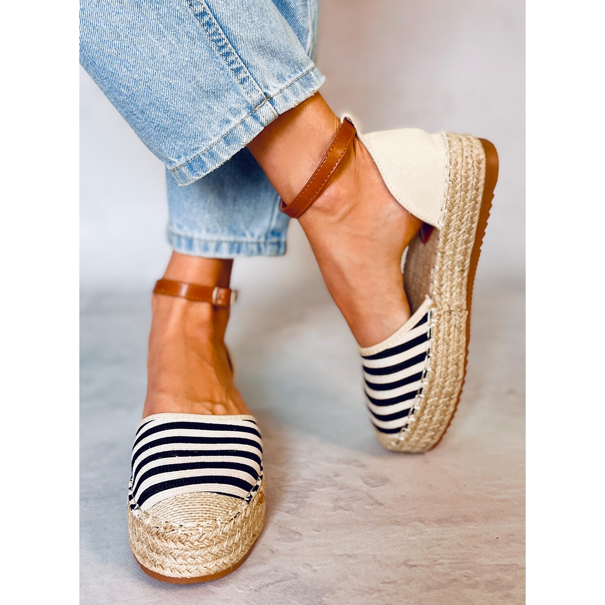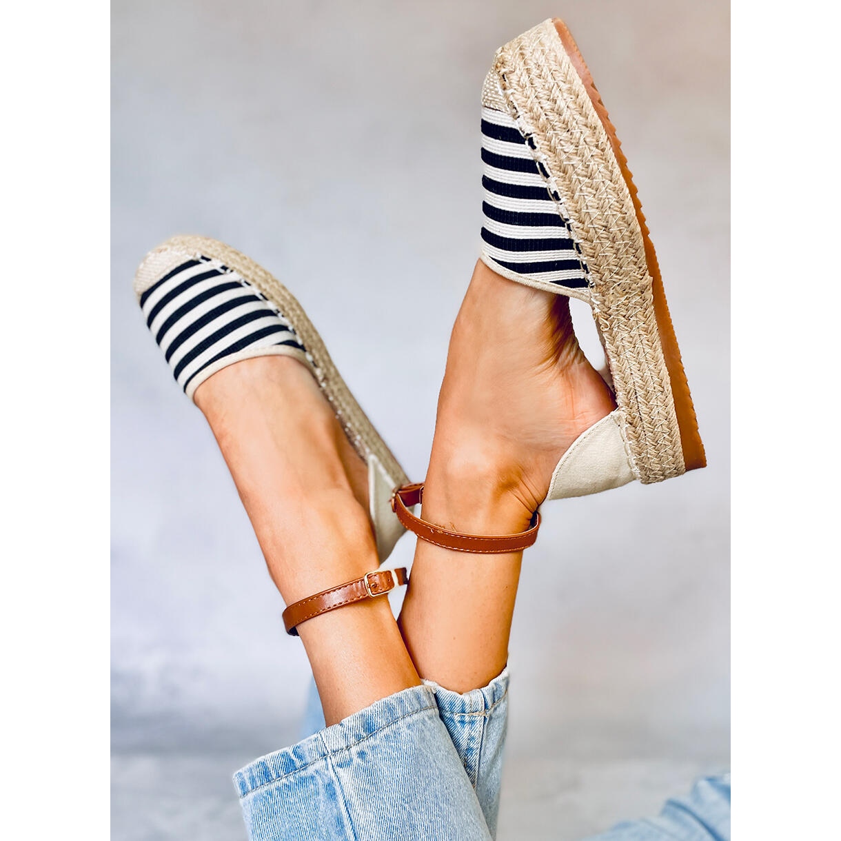Descoperă eleganța verii cu espadrilele Gema Black într-o nuanță de bej. Aceste espadrile elegante de dama cu inchidere la glezna sunt o alegere perfecta pentru orice femeie la moda care cauta o combinatie de confort si stil. Modelul lor unic cu dungi atrage atenția și le face să arate grozav pe picior, adăugând caracter oricărui stil de vară.