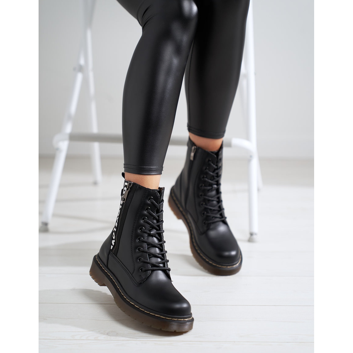 Acești lucrători sunt echipați suplimentar cu fermoar și șireturi, ceea ce permite o îmbrăcare ușoară și ajustare la nevoile individuale. Indiferent de ocazie, lucrătorii negri Shelovet vor fi complementul perfect pentru multe stiluri, adăugând un caracter rock și funcționalitate.