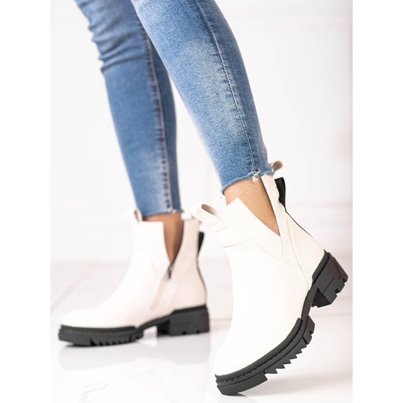 Descoperiți stilul unic și confortul oferit de ghetele de muncitori de damă crem decupate de la producătorul W. Potocki. Aceste botine elegante se disting printr-un design atemporal care se potrivește perfect naturii casual a stilului de zi cu zi. Fabricate din piele ecologică de înaltă calitate, îmbină perfect un aspect la modă cu grija pentru mediu.