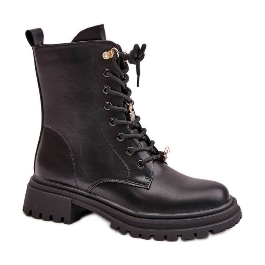 Cizmele sunt echipate cu o încuietoare laterală practică, ceea ce face mai ușor să se pună și să decoleze, iar dantela suplimentară decorată cu pini fermecători atrag atenția și oferă întregului personaj unic. Interiorul țesăturii izolate înseamnă că picioarele tale nu numai că vor arăta elegante, dar vor fi protejate corespunzător împotriva frigului.