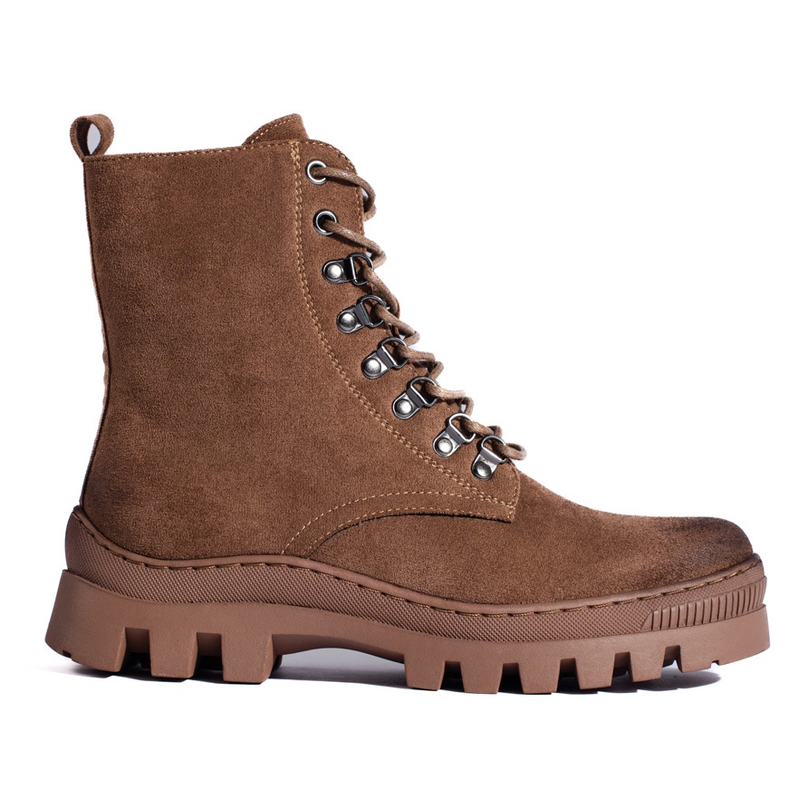 Partea superioară de 17 cm înălțime, din piele ecologică de piele de căprioară, asigură nu doar un aspect elegant, ci și confort la purtare. Contorul de călcâi este închis și moale, ceea ce mărește confortul chiar și în timpul unei zile lungi. Cizmele sunt prevazute cu o inchidere practica: fermoar si sireturi, care usureaza incaltarea lor si ajustarea la picior.