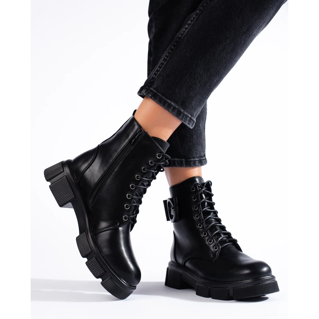 Muncitorii clasici, negri, din piele ecologică de înaltă calitate. Modelul care combină un personaj casual și rock, ideal pentru sezonul de toamnă/iarnă - izolat, confortabil și stabil, va funcționa atât pentru stilizări de zi cu zi, cât și pentru aspect mai prădător.