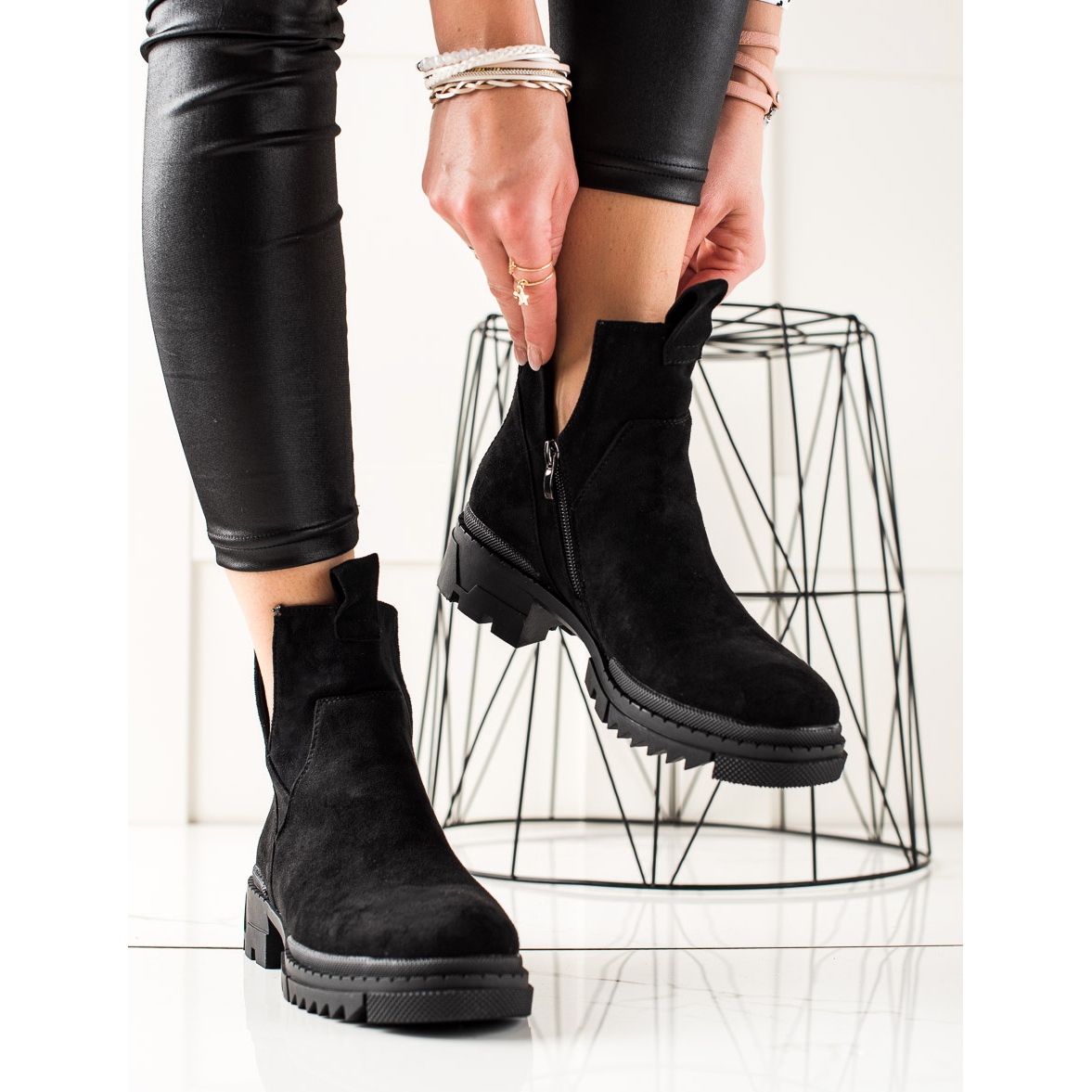 Descoperiți confort și eleganță excepționale datorită cizmelor de muncitori din piele intoarsa neagra cu decupaj de la producatorul W. Potocki. Aceste botine elegante de damă sunt o propunere perfectă de zi cu zi, care se va potrivi cu succes în stilul tău casual, perfectă atât pentru stilul urban, cât și pentru cel de zi cu zi.