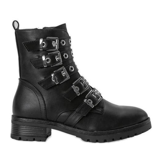 Lucrătorii cu catarame Black Suzan sunt alegerea perfectă pentru femeile care doresc să combine confortul cu un stil rock distinct. Aceste cizme cu toc plat se disting nu numai prin aspectul lor la modă, ci și prin prelucrarea atentă din piele ecologică. Decoratiunile sub forma a cinci catarame stilate combinate cu detalii argintii dau incaltamintei un caracter care va atrage cu siguranta atentia.