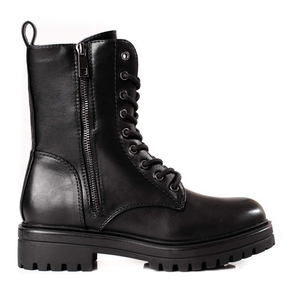 Cizmele pentru muncitori Shelovet de dama negre cu fermoar decorativ sunt o propunere ideala pentru femeile care cauta pantofi eleganti si confortabili pentru sezonul toamna/iarna. Confectionate din piele ecologica de inalta calitate, aceste botine sunt o combinatie de modernitate si design clasic. Stilul lor casual, rock este perfect pentru ținutele de zi cu zi, adăugând caracter oricărei ținute.