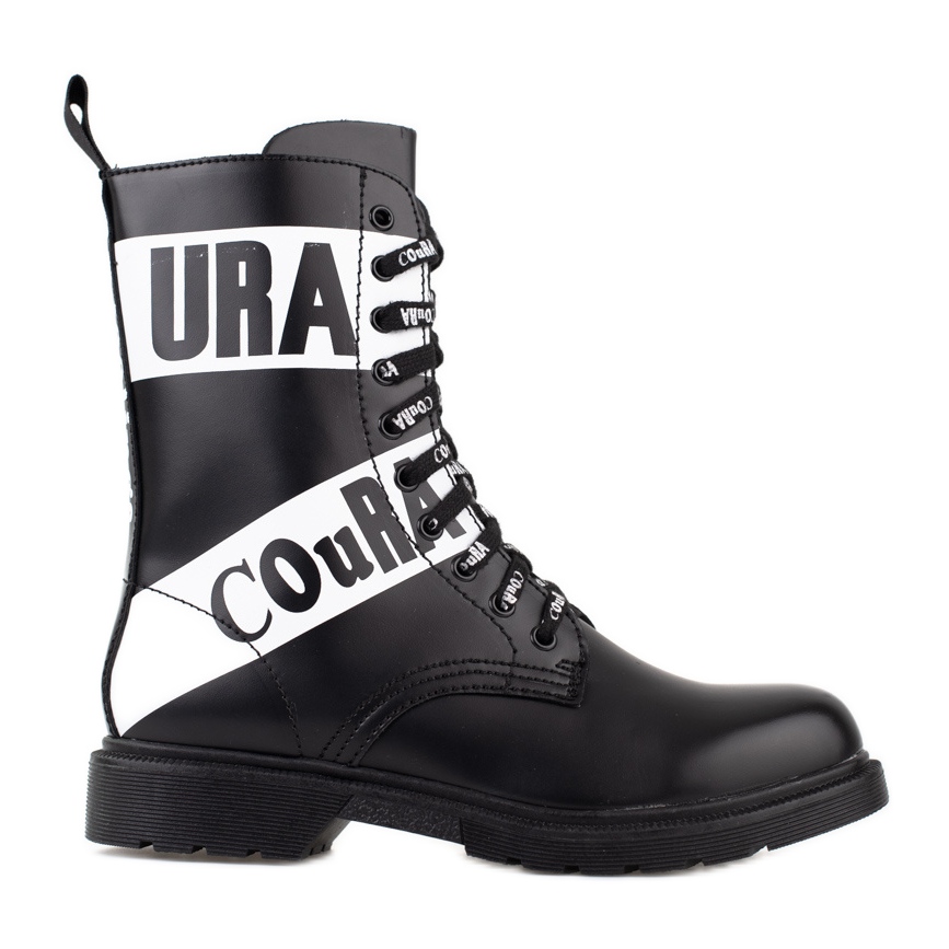Muncitorii clasici, negri, sunt o propunere care combină un personaj casual și rock cu comoditatea necesară în fiecare zi. Fabricate din piele ecologică, cu o inserție textilă, vor funcționa în stilizări de toamnă-iarnă, mai ales dacă căutați „gleznă” cu un design distinct.