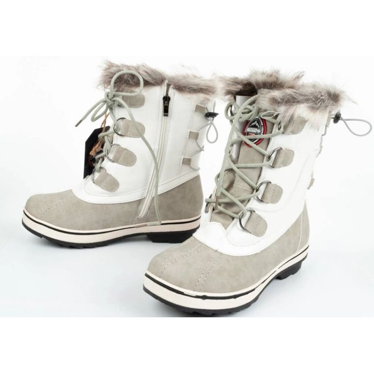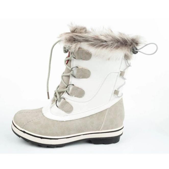 Pantofi geografici Norvegia Sophia White - cizme de zăpadă elegante, calde și funcționale pentru femeile care apreciază confortul în zilele reci. Culorile clasice, albe, fac ca modelul să se potrivească atât cu stilizările urbane de iarnă, cât și la rezultatele mai scurte pe teren.