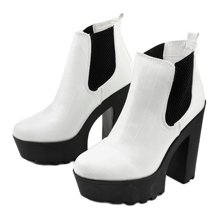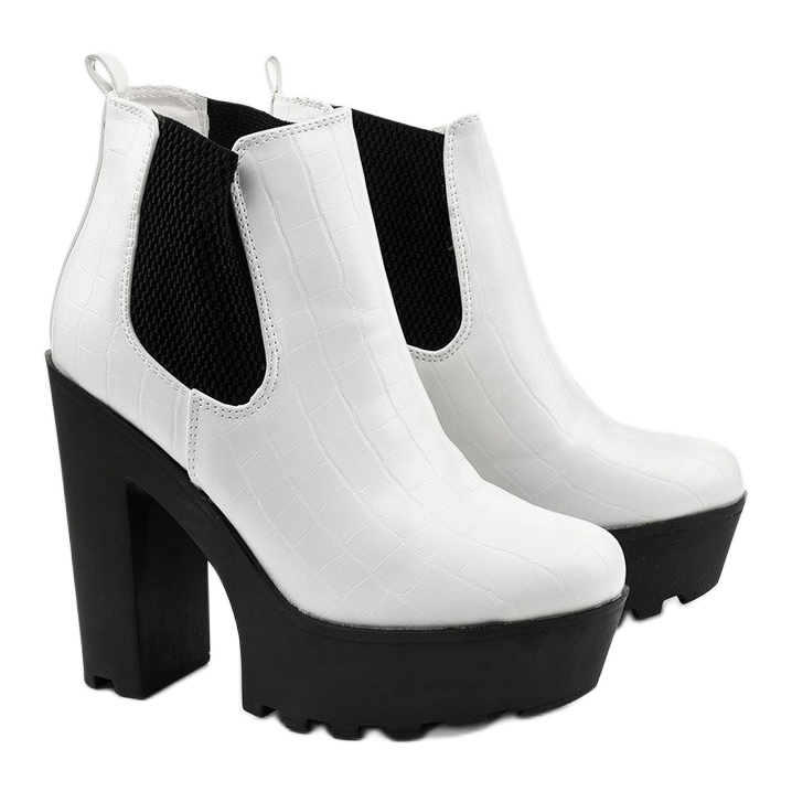 Descoperiți eleganța și confortul oferite de botinele albe cu toc Zellola. Aceste cizme elegante sunt realizate din material asemănător pielii de înaltă calitate, care nu numai că arată unic, dar asigură și confortul la purtare. Datorită unui toc bloc solid și unei platforme, înălțimea lor este de 9,5 cm, ceea ce le face mai subțiri din punct de vedere optic și le face să se potrivească perfect cu multe stiluri diferite - atât elegante, cât și casual.