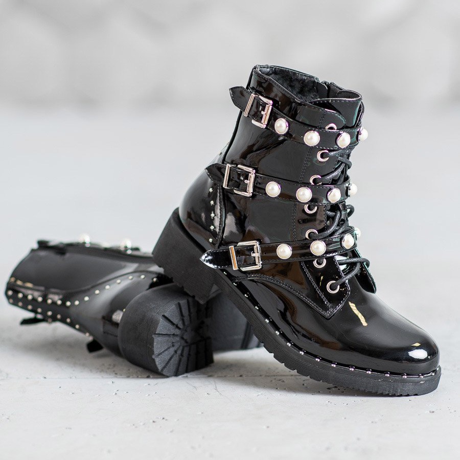 Descoperă botinele unice Seastar care vor adăuga o notă de eleganță și rock chic garderobei tale! Aceste botine negre lacuite sunt combinația perfectă de stil și confort. Confectionate din piele ecologica de inalta calitate, se remarca printr-o stralucire subtila si o croiala la moda, pana la glezna.