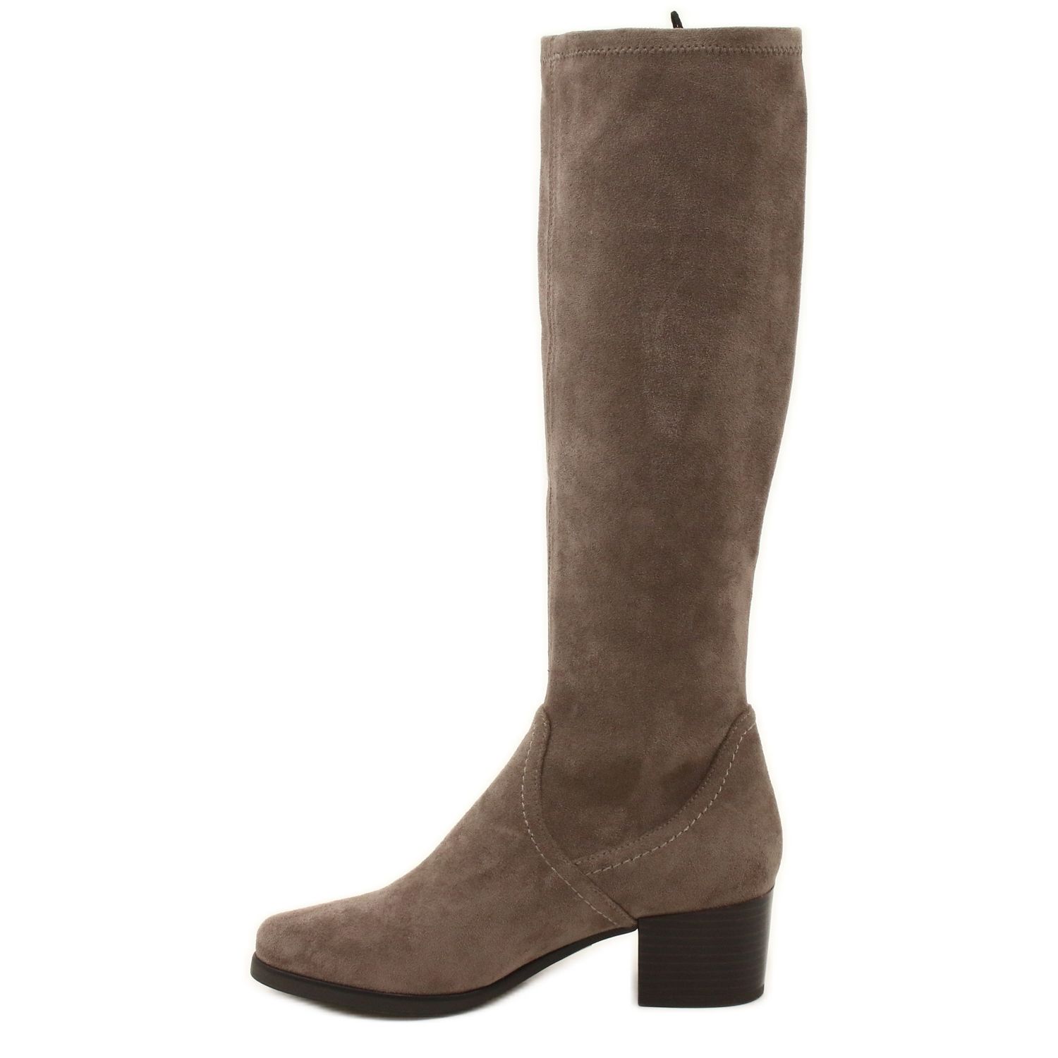 Cizme elegante, de genunchi lungi, care combină o tăietură clasică cu un confort. Fabricat din materialul material din piele de căprioară mai groasă, care se adaptează frumos la vițel, subliniind figura. Perfect în fiecare zi și pentru stilizări mai elegante.