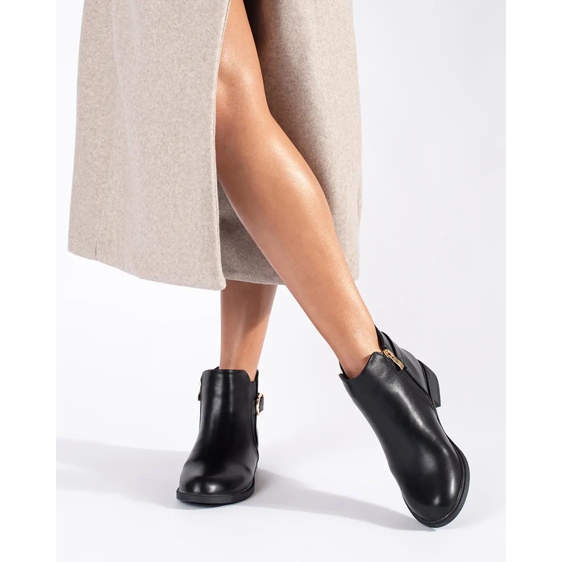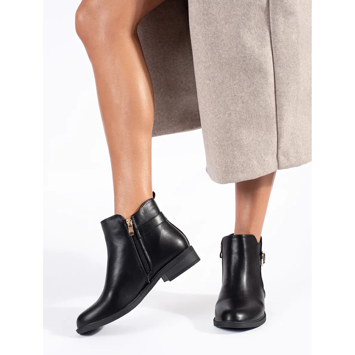 Detalii: Ghete Chelsea de dama negre cu elemente aurii negru
