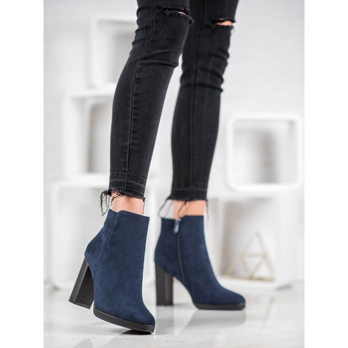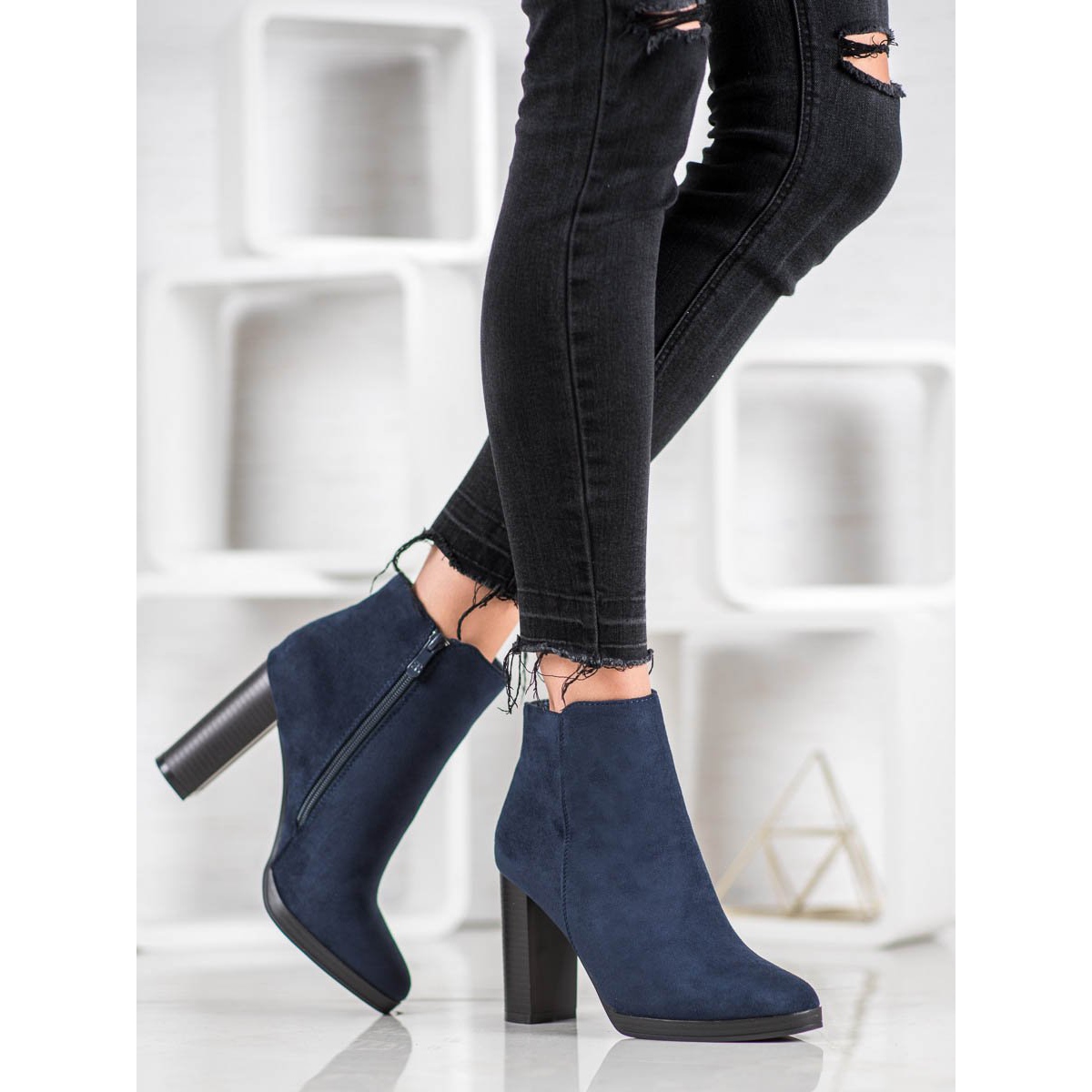 Va prezentam botinele clasice Ideal Shoes cu toc inalt intr-o culoare albastra eleganta, care sunt o completare perfecta a multor stiluri. Fabricate din piele de piele de căprioară ecologică, aceste botine au partea superioară până la gleznă, ceea ce le face atât elegante, cât și confortabile.