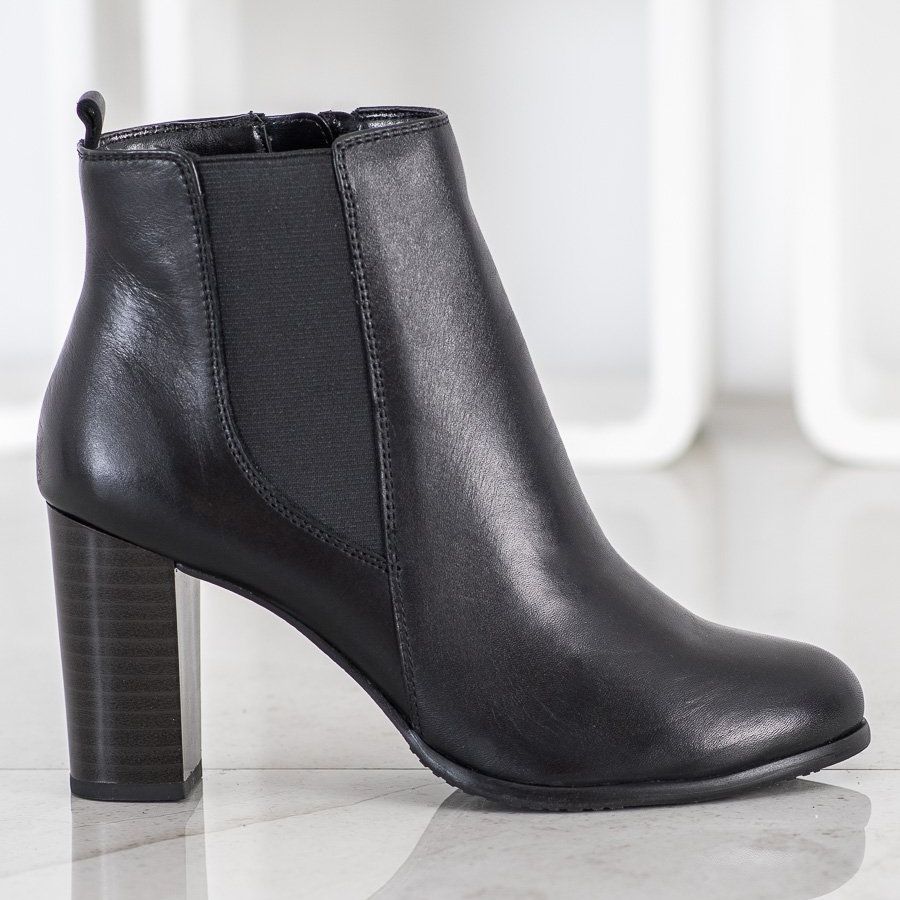 Botinele negre cu o croială cochetă, până la glezne, sunt complementul perfect pentru multe stiluri. Datorită vârfului rotund și tocului rigid, pantofii asigură confortul purtării pe tot parcursul zilei. Înălțimea tocului de 8 cm adaugă eleganță și în același timp permite o mișcare confortabilă.