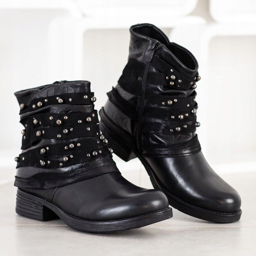 Descoperiți eleganța și confortul cu botinele confortabile cu decorațiuni Queentina în negru. Acești încălțăminte stilate sunt alegerea perfectă pentru zilele de iarnă, datorită proprietăților lor excelente de încălzire. Partea interioara a cizmelor este realizata 100% din material textil, ceea ce asigura caldura si confort.