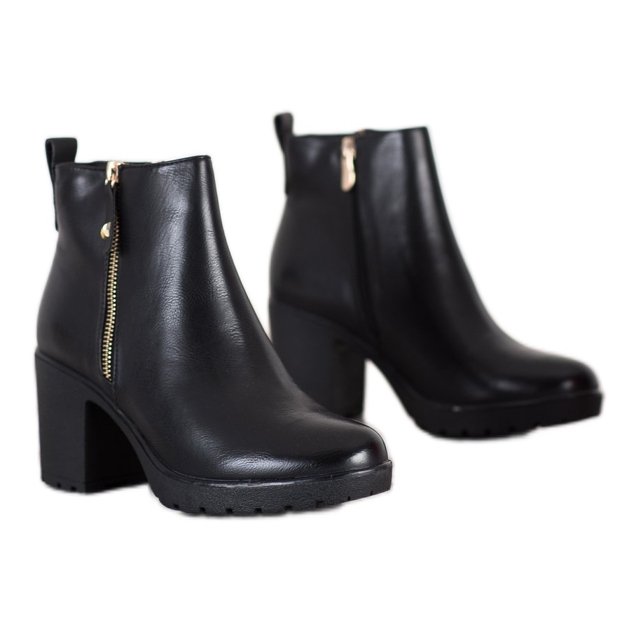 Cauți botinele perfecte pentru zilele mai reci care să îmbină eleganța și confortul? Bella Paris are o propunere perfectă pentru tine - botine confortabile, izolate, în negru clasic. Acești pantofi eleganti sunt confecționați din material asemănător pielii de înaltă calitate, ceea ce îi face nu numai atractivi vizual, ci și prietenoși pentru persoanele care preferă produse care nu folosesc piele naturală.